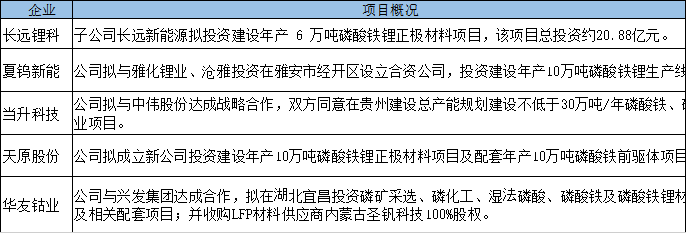 在優(yōu)質產能不足的情況下,三元材料企業(yè)積極布局LFP正極項目搶占市場,有望成為其新的業(yè)績增長點。