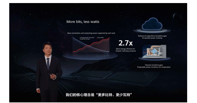 中國儲能網訊:近日,華為公司輪值董事長郭平,在巴塞羅那MWC峰會上提出:要保持數字經濟的長期活力,必須加強碳減排的力度。More bits,less watts,華為要通過理論、材料、算法等的創(chuàng)新突破,實現每一個瓦特支撐更多的連接和計算。