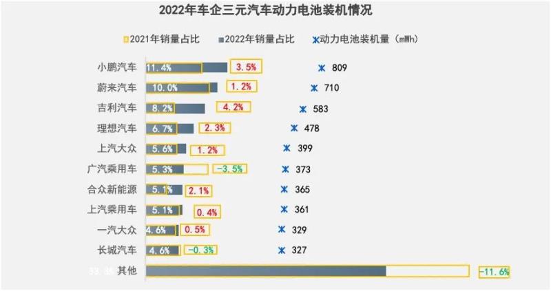 很明顯可以看到,比亞迪、特斯拉(國內市場)和上汽通用五菱幾乎退出了三元動力電池車型的布局,新勢力理想、小鵬、蔚來和哪吒,吉利、上汽乘用等傳統車企,南北大眾、華晨寶馬等合資品牌,是目前三元新能源汽車的主力軍。