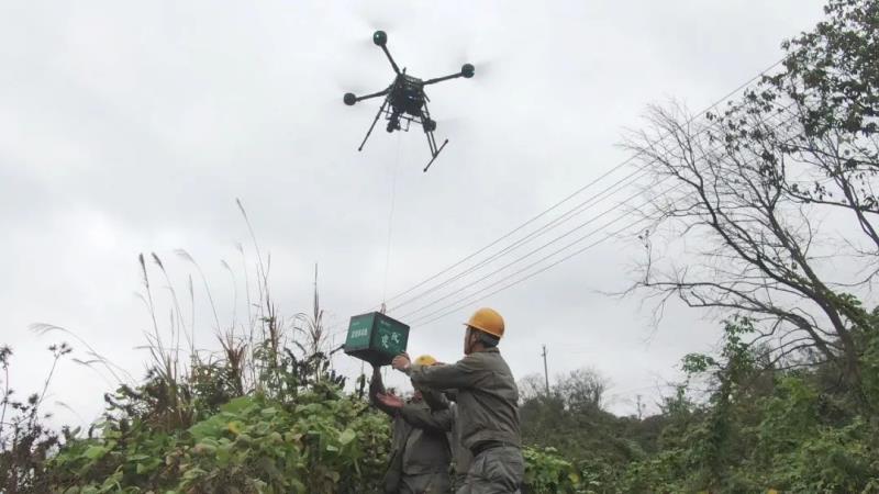 ▎臺(tái)風(fēng)過(guò)后利用運(yùn)輸無(wú)人機(jī)將搶修物資送至搶修現(xiàn)場(chǎng)|李攀璐 攝
