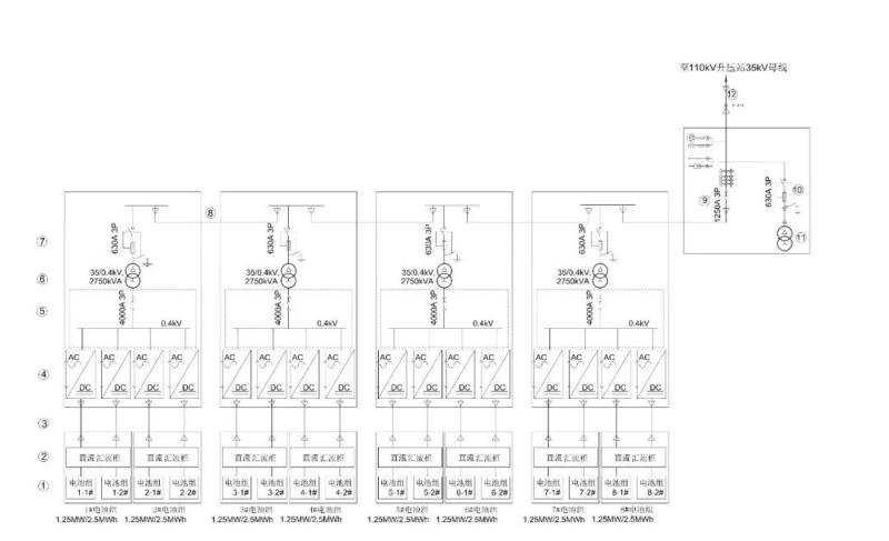 圖1 典型新能源配套儲能電站電氣主接線 10MW/20MWh