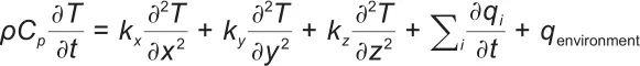 上述方程中,圖片為電芯密度;圖片為等壓比熱容;圖片、圖片、圖片為電芯中沿各個方向的熱導(dǎo)率;圖片為對所有化學(xué)反應(yīng)的產(chǎn)熱速率求和;圖片為電池與環(huán)境換熱所引起的能量變化。預(yù)測溫度變化需要求解二階含時偏微分方程,如果認(rèn)為電池中的反應(yīng)和空間無關(guān),電芯溫度均勻上升且電芯體系與外界無熱交換,也可簡化為一階微分方程