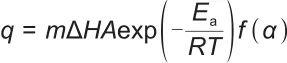 式中,圖片指反應(yīng)的產(chǎn)熱量;圖片為反應(yīng)物的質(zhì)量;圖片為反應(yīng)單位質(zhì)量的吸放熱;α為反應(yīng)的歸一化反應(yīng)量;圖片為機(jī)理函數(shù);圖片為反應(yīng)的指前因子;圖片為反應(yīng)活化能。通過熱分析實(shí)驗(yàn)可以測定求解以上參數(shù),這也是熱分析動力學(xué)的基本問題。電芯升溫過程中內(nèi)部會發(fā)生多個反應(yīng),它們對電芯升溫的貢獻(xiàn)可以看作線性疊加,通過準(zhǔn)確描述所有反應(yīng)即能較為精準(zhǔn)地預(yù)測電芯在不同條件下的溫度變化行為