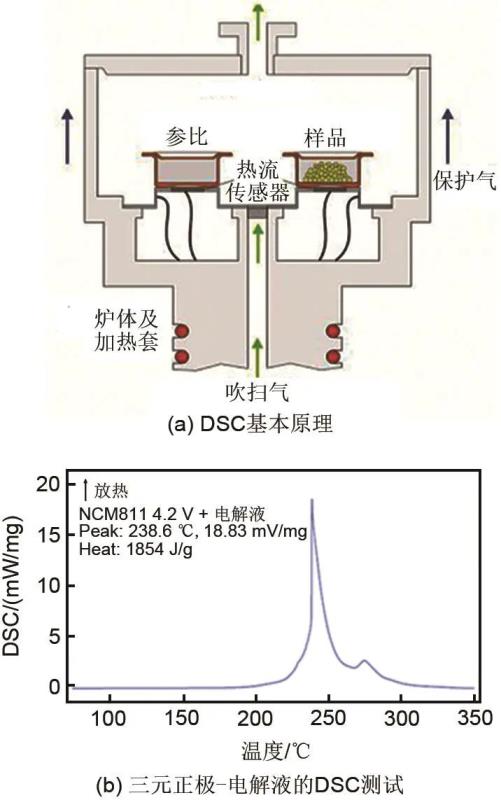 圖4 (a) DSC基本原理;(b) 脫鋰態(tài)正極-電解液的DSC測試結(jié)果