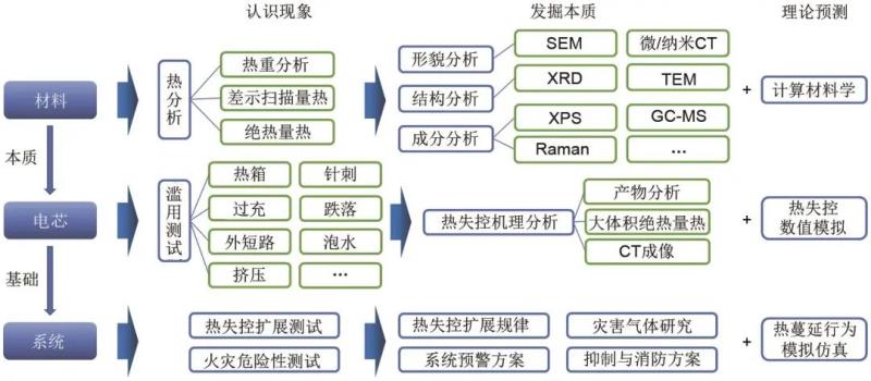 電池安全的預(yù)防、預(yù)警、預(yù)測依賴對從系統(tǒng)到電芯再到材料熱失控構(gòu)效關(guān)系的深刻理解。縱觀近年來引起廣泛關(guān)注的鋰電池起火事件,大部分發(fā)生在新技術(shù)和新材料的初步應(yīng)用階段,如近幾年多起采用高鎳三元電池的電動汽車起火事件,而當(dāng)大量事故引起廣泛關(guān)注后,關(guān)于該電池體系的安全性研究才隨之增多,電池安全研究于電池電化學(xué)性能研究的滯后性是電池安全研究中的一個鮮明特點(diǎn)。