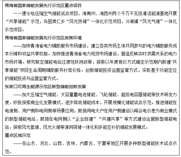 加快重點區(qū)域試點示范。積極開展區(qū)域性儲能示范區(qū)建設(shè),鼓勵各地因地制宜開展新型儲能政策機制改革試點,推動重點區(qū)域新型儲能試點示范項目建設(shè)。結(jié)合以沙漠、戈壁、荒漠地區(qū)為重點的大型風(fēng)電光伏基地建設(shè)開展新型儲能試點示范;加快青海省國家儲能發(fā)展先行示范區(qū)建設(shè);加強河北、廣東、福建、江蘇等地首批科技創(chuàng)新(儲能)試點示范項目跟蹤評估;統(tǒng)籌推進張家口可再生能源示范區(qū)新型儲能發(fā)展。鼓勵各地在具備先進技術(shù)、人才隊伍和資金支持的前提下,大膽先行先試,開展技術(shù)創(chuàng)新、模式創(chuàng)新以及體制機制創(chuàng)新試點示范和應(yīng)用。