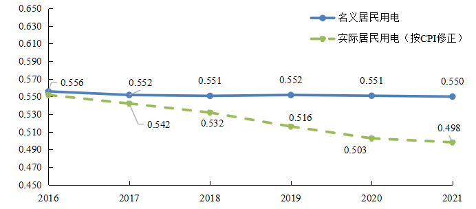 圖6 居民電價名義與實際變化趨勢圖