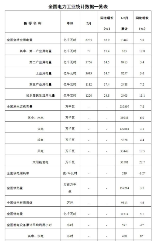 1-2月份,全國(guó)發(fā)電設(shè)備累計(jì)平均利用597小時(shí),比上年同期減少8小時(shí)。其中,核電1195小時(shí),比上年同期增加48小時(shí);風(fēng)電323小時(shí),比上年同期減少96小時(shí)。