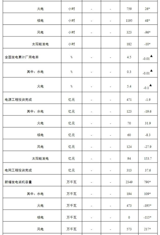 注:1.全社會(huì)用電量為全口徑數(shù)據(jù),全國(guó)供電量為調(diào)度口徑數(shù)據(jù)。2.“同比增長(zhǎng)”列中,標(biāo)*的指標(biāo)為絕對(duì)量;標(biāo)▲的指標(biāo)為百分點(diǎn)。