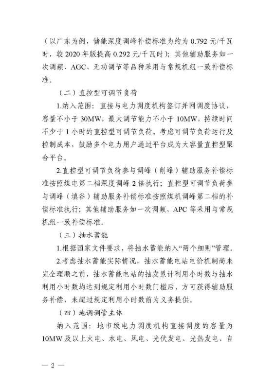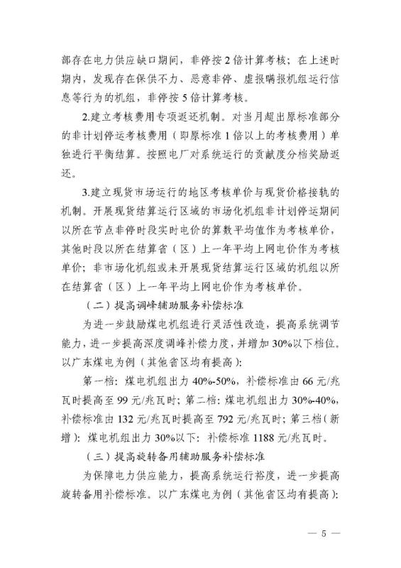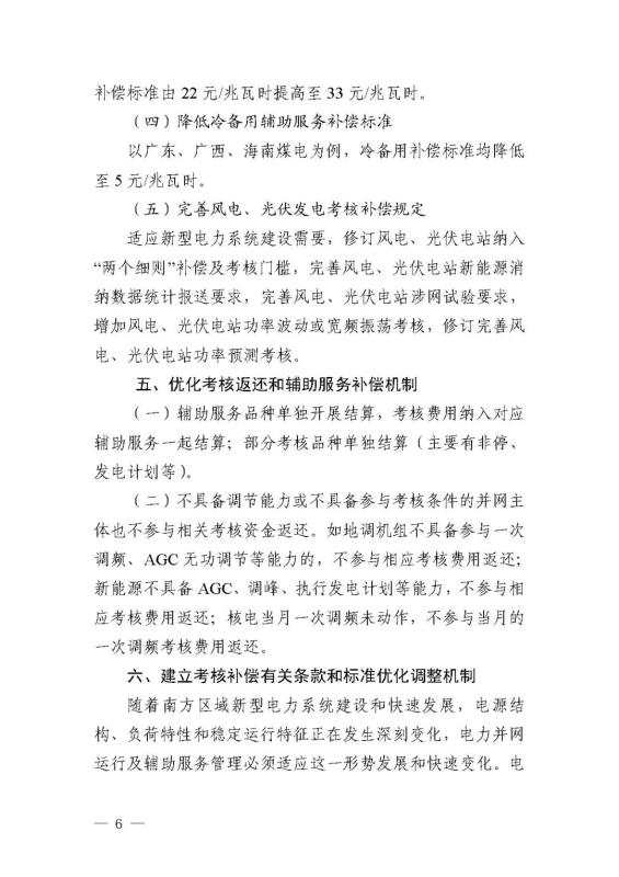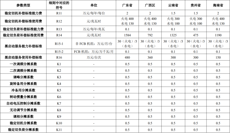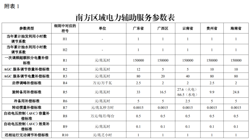 文件提到的南方區(qū)域各種電力輔助服務(wù)補償標準如下圖所示: