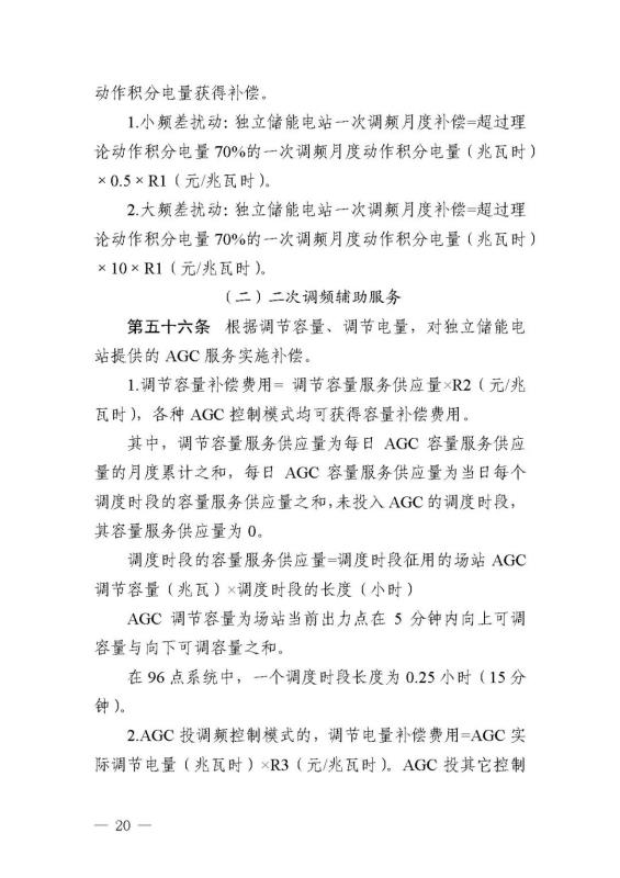 大頻差擾動:獨立儲能電站月度補償=超過理論動作積分電量70%的月度動作積分電量(兆瓦時) ×10×R1(元/兆瓦時)。即補償標準為10×150000元/兆瓦時=1500元/kWh。