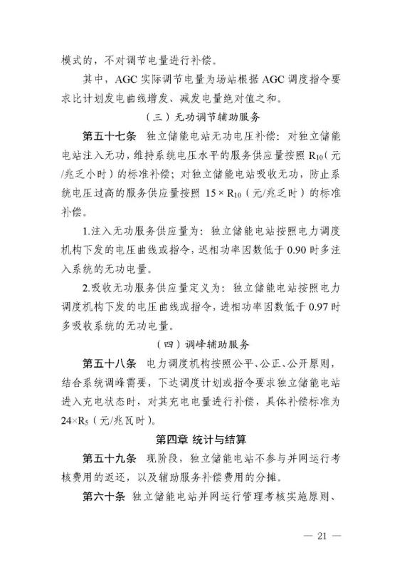 儲能細則顯示,新型儲能可以參與一次調(diào)頻、二次調(diào)頻、無功調(diào)節(jié)以及調(diào)峰輔助服務(wù)并獲得補償,補償規(guī)則標準主要為: