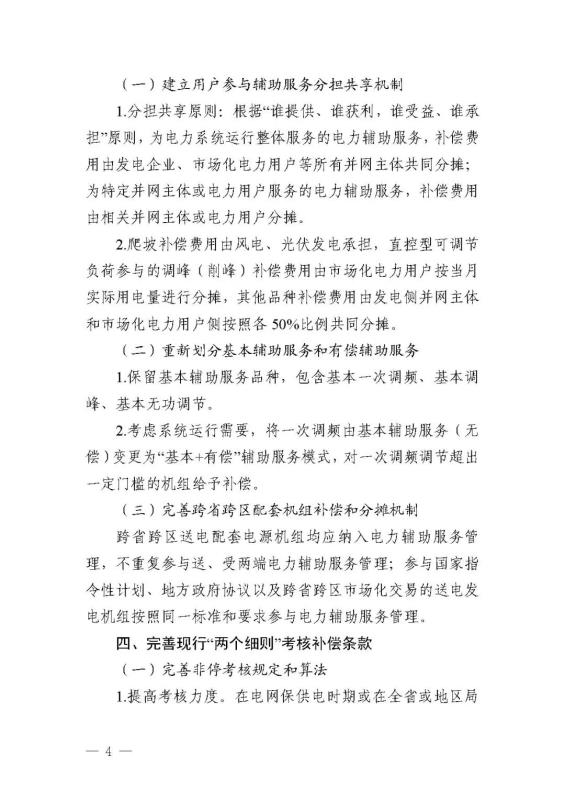 此外,文件明確根據(jù)“誰提供、誰獲利,誰受益、誰承擔”原則,電力用戶將參與電力輔助服務(wù)補償費用分攤。如一次調(diào)頻、二次調(diào)頻、調(diào)峰等輔助服務(wù)都提出補償費用由發(fā)電企業(yè)、市場化電力用戶等所有并網(wǎng)主體共同分攤;為特定并網(wǎng)主體或電力用戶服務(wù)的電力輔助服務(wù),補償費用 由相關(guān)并網(wǎng)主體或電力用戶分攤。