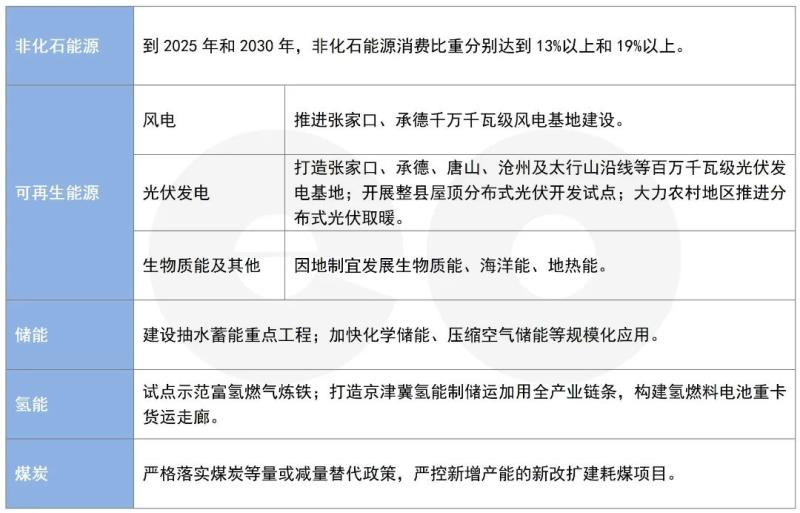 化石能源方面,穩(wěn)油氣、減煤、增儲(chǔ)是關(guān)鍵詞。煤炭方面,多地提出削減煤炭消費(fèi)量,推進(jìn)煤電機(jī)組升級(jí)改造,推動(dòng)煤電逐步向調(diào)峰電源轉(zhuǎn)變。北京提出全市非應(yīng)急情況下基本不使用煤炭,江西提出不再新增燃煤自備機(jī)組,四川提出不再新核準(zhǔn)建設(shè)煤電項(xiàng)目。天然氣方面,多地將重點(diǎn)增強(qiáng)天然氣接收、運(yùn)輸、儲(chǔ)存能力。青海、四川將重視頁(yè)巖氣的開(kāi)發(fā),青海提出進(jìn)一步加大頁(yè)巖氣資源調(diào)查評(píng)價(jià)力度,四川擬建成全國(guó)最大的現(xiàn)代化天然氣(頁(yè)巖氣)生產(chǎn)基地。