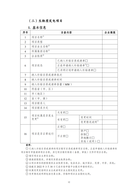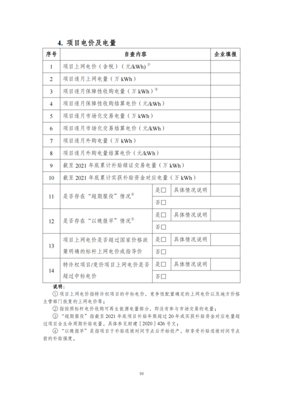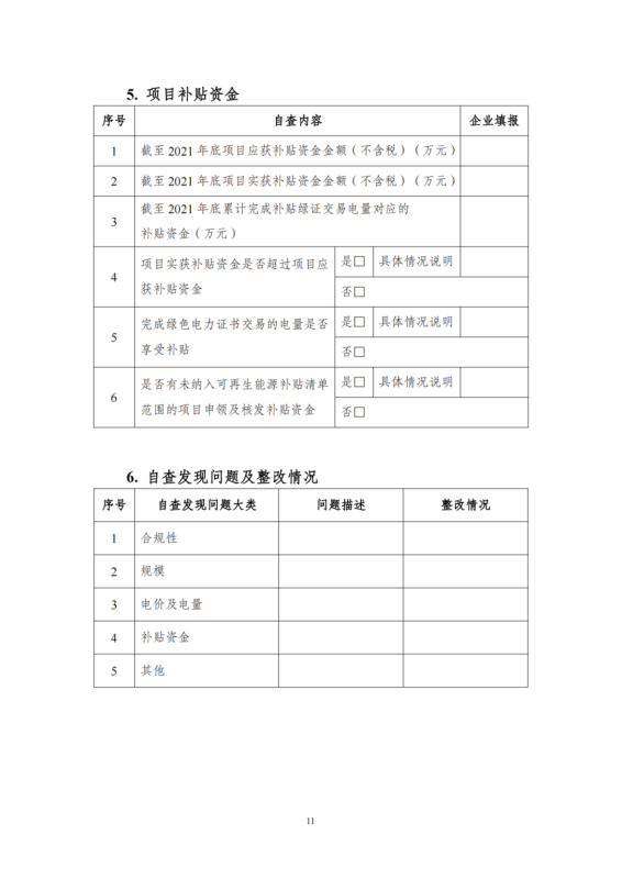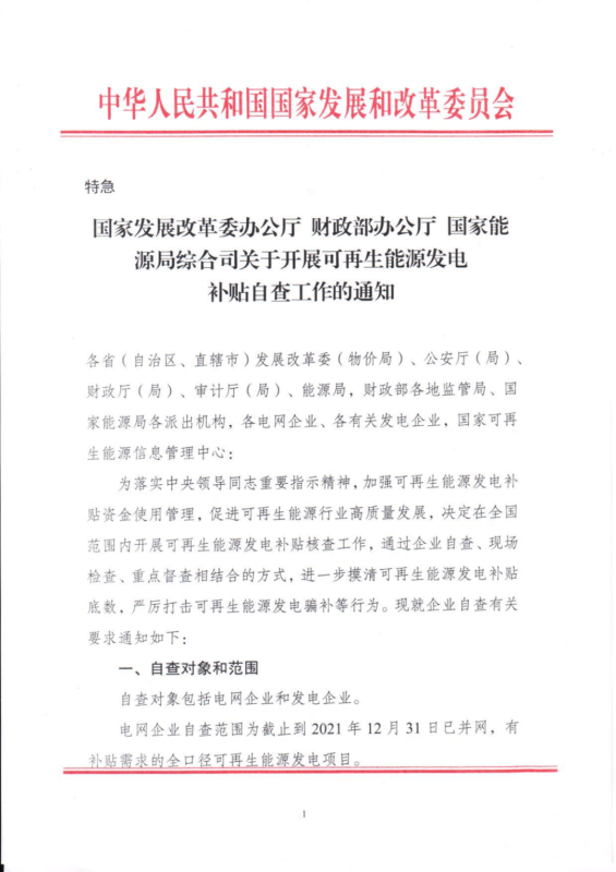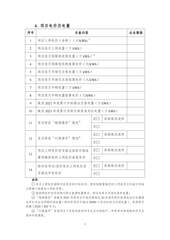 根據(jù)文件,自查對象包括電網(wǎng)和發(fā)電企業(yè),范圍為截止到2021年12月31日已并網(wǎng)有補貼需求的全口徑可再生能源發(fā)電項目,主要為風電、集中式光伏電站以及生物質(zhì)發(fā)電項目。