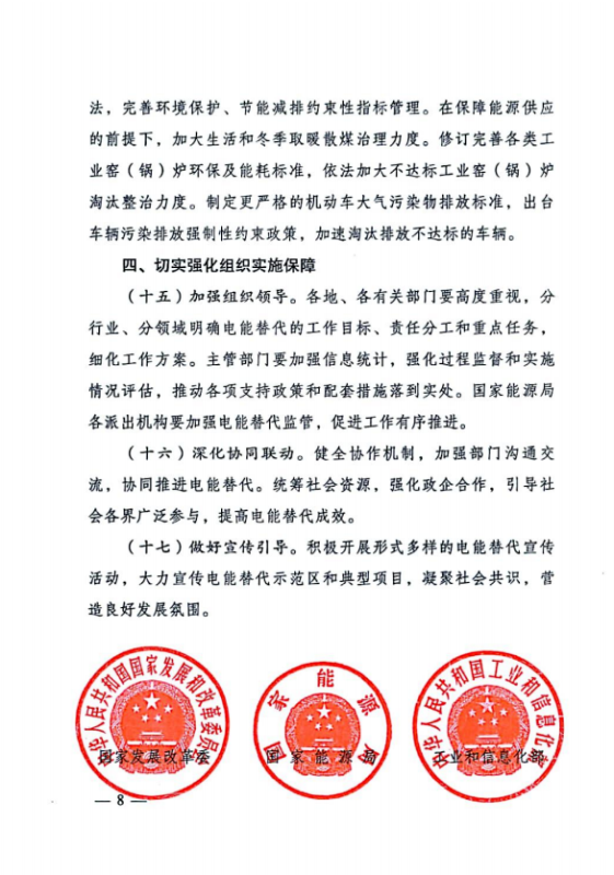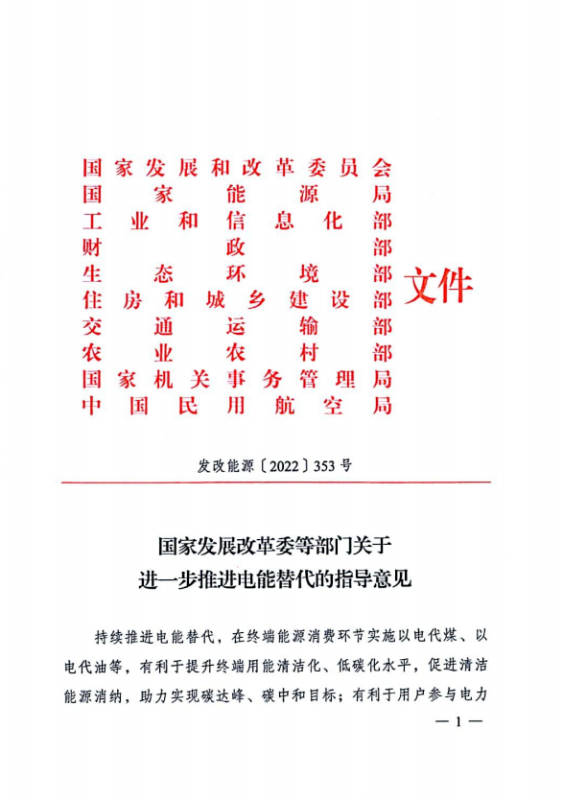 中國儲能網(wǎng)訊:3月9日,國家發(fā)展改革委、國家能源局、工業(yè)和信息化部、財政部、生態(tài)環(huán)境部、住房城鄉(xiāng)建設部、交通運輸部、農(nóng)業(yè)農(nóng)村部、國家機關事務管理局、中國民用航空局等10部門聯(lián)合印發(fā)《關于進一步推進電能替代的指導意見》,意見提出:
