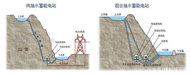 抽水蓄能有兩種方式,一種是純抽水蓄能,國內(nèi)建的大部分都是這類,比如廣州抽水蓄能電站、河北豐寧抽水蓄能電站;另一種是混合式抽水蓄能,是在純抽水蓄能的基礎(chǔ)上安裝有普通水輪發(fā)電機組,可以利用上河道的水流發(fā)電。后者既有儲能的作用,又擁有常規(guī)水電站的功能。