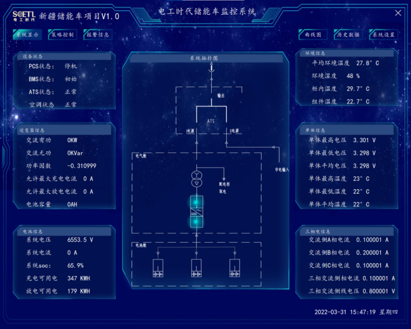 堅(jiān)持創(chuàng)新驅(qū)動(dòng),持續(xù)提升自主研發(fā)能力。本次儲(chǔ)能車首次使用了自主研發(fā)的就地監(jiān)控系統(tǒng),實(shí)現(xiàn)儲(chǔ)能車各設(shè)備信息狀態(tài)的全方位檢測(cè)。