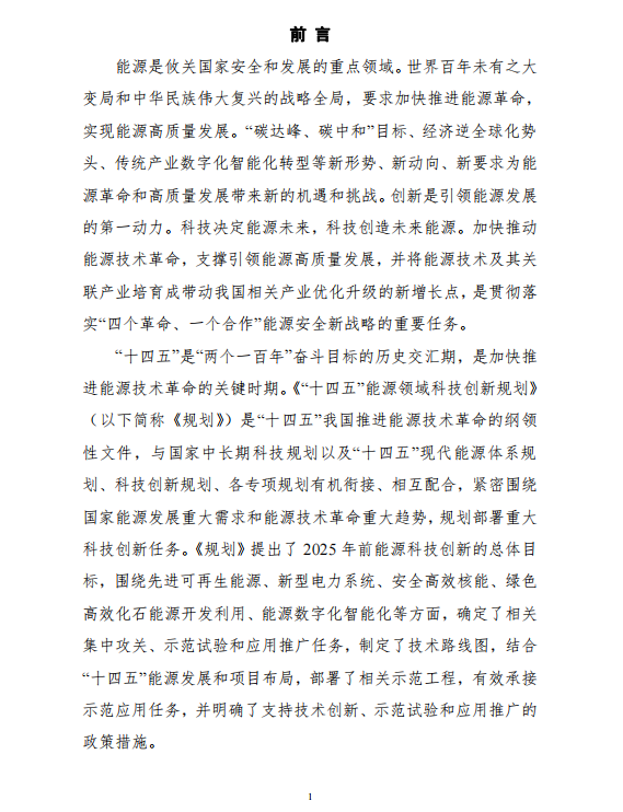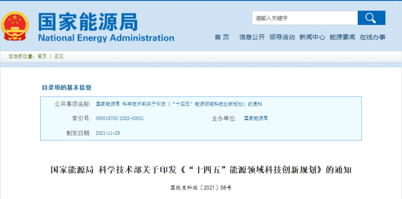 國家能源局 科學(xué)技術(shù)部關(guān)于印發(fā)《“十四五”能源領(lǐng)域科技創(chuàng)新規(guī)劃》的通知