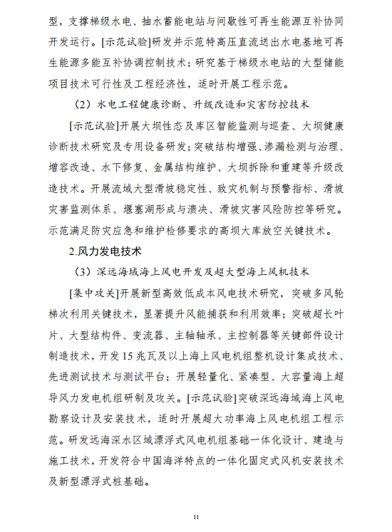 研制大型變速抽水蓄能機組水泵水輪機、發(fā)電電動機、交流勵磁系統(tǒng)、繼電保護系統(tǒng)、計算機監(jiān)控系統(tǒng)、調(diào)速系統(tǒng)等關(guān)鍵設(shè)備,研制發(fā)電電動機出口斷路器等高壓開關(guān)設(shè)備,建 立變速抽水蓄能技術(shù)體系。突破海水抽水蓄能電站應(yīng)對海上惡劣 天氣的發(fā)電調(diào)度、水庫和地下水防滲、發(fā)電機組抗附著和抗腐蝕、 進水口和尾水系統(tǒng)防海浪等關(guān)鍵技術(shù),適時開展工程示范。