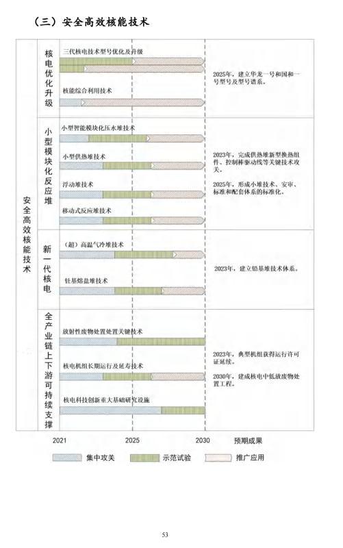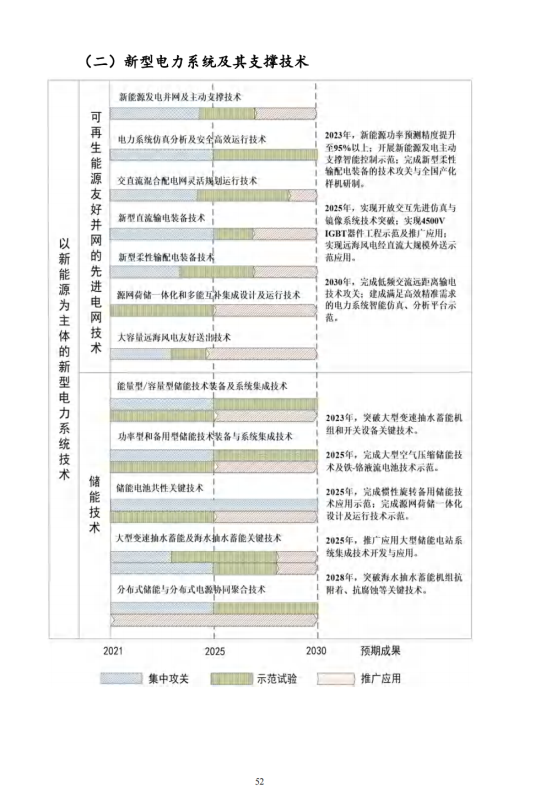 《規(guī)劃》發(fā)布了先進可再生能源發(fā)電及綜合利用技術(shù)、新型電力系統(tǒng)及其支撐技術(shù)、安全高效核能技術(shù)、綠色高效化石能源開發(fā)利用技術(shù)、能源系統(tǒng)數(shù)字化智能化技術(shù)五大技術(shù)路線圖。