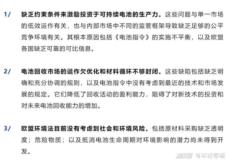總結(jié)來說,歐盟出臺新電池法主要解決此前《電池指令》存在的三個問題: