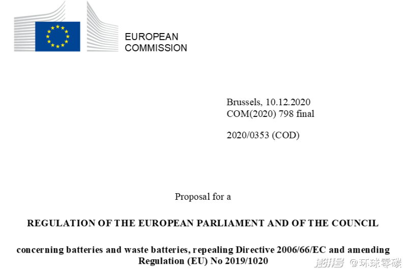 更關(guān)鍵的是,歐盟委員會于2020年12月10日提出了一項新電池法的提議草案。這項法規(guī)提議,擬對此前《電池指令》進(jìn)一步地完善,實施方式由“指令”變?yōu)椤胺ㄒ?guī)”,以確保投放歐盟市場的電池在整個生命周期中都變得可持續(xù)且安全。