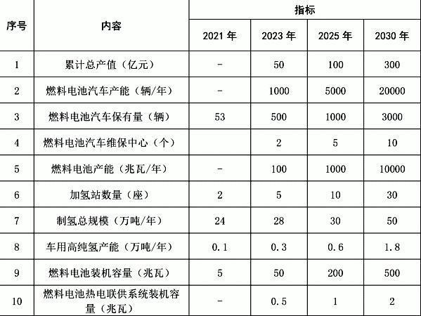 西海岸新區(qū)氫能產(chǎn)業(yè)主要發(fā)展指標(biāo)。