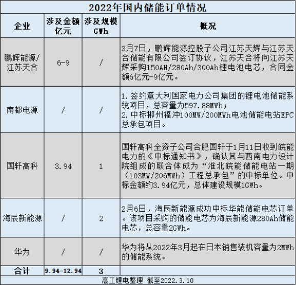 據(jù)高工鋰電不完全統(tǒng)計,短短三個月,國內(nèi)儲能訂單涉及項目就有6個,涉及金額超9億元,規(guī)模超3GWh。