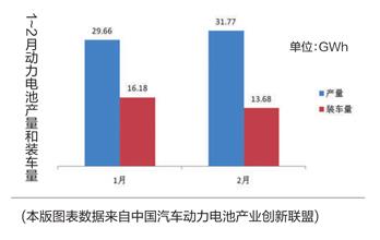 根據(jù)聯(lián)盟的統(tǒng)計(jì)數(shù)據(jù),1~2月,我國動(dòng)力電池累計(jì)產(chǎn)量為61.4GWh,同比增長(zhǎng)185.7%;累計(jì)裝車量為29.9GWh,同比增長(zhǎng)109.7%。