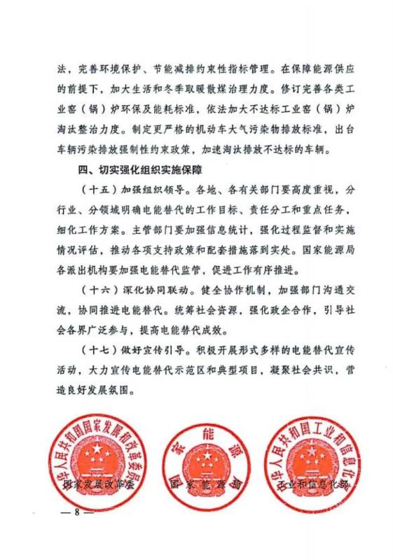國(guó)家發(fā)改委等部門聯(lián)合印發(fā)《關(guān)于進(jìn)一步推薦電能替代的指導(dǎo)意見》