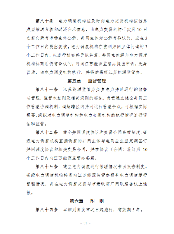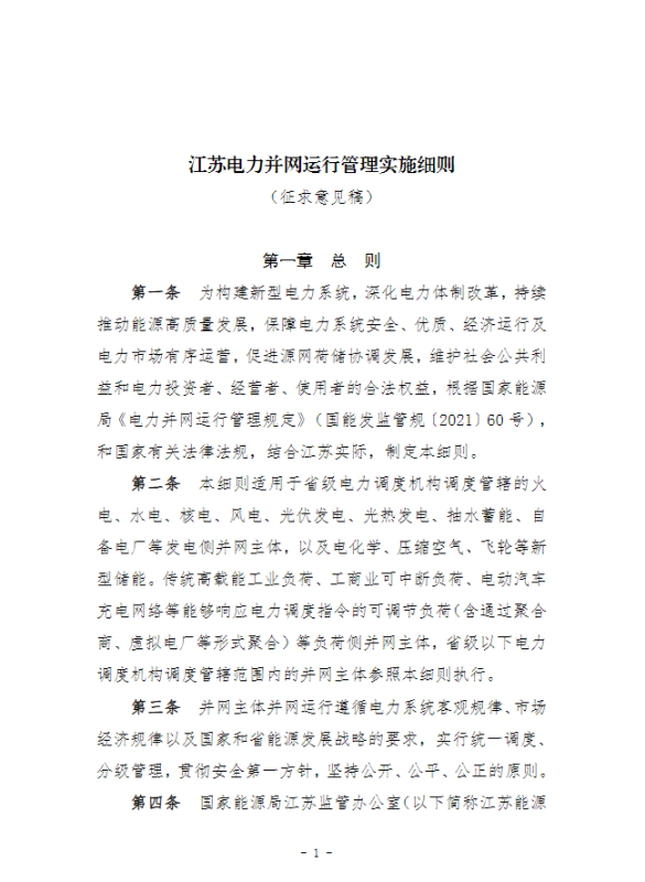 江蘇能源監(jiān)管辦關(guān)于《江蘇電力并網(wǎng)運(yùn)行管理實(shí)施細(xì)則(征求意見稿)》與《江蘇電力輔助服務(wù)管理實(shí)施細(xì)則(征求意見稿)》公開征求意見的公告