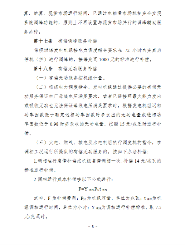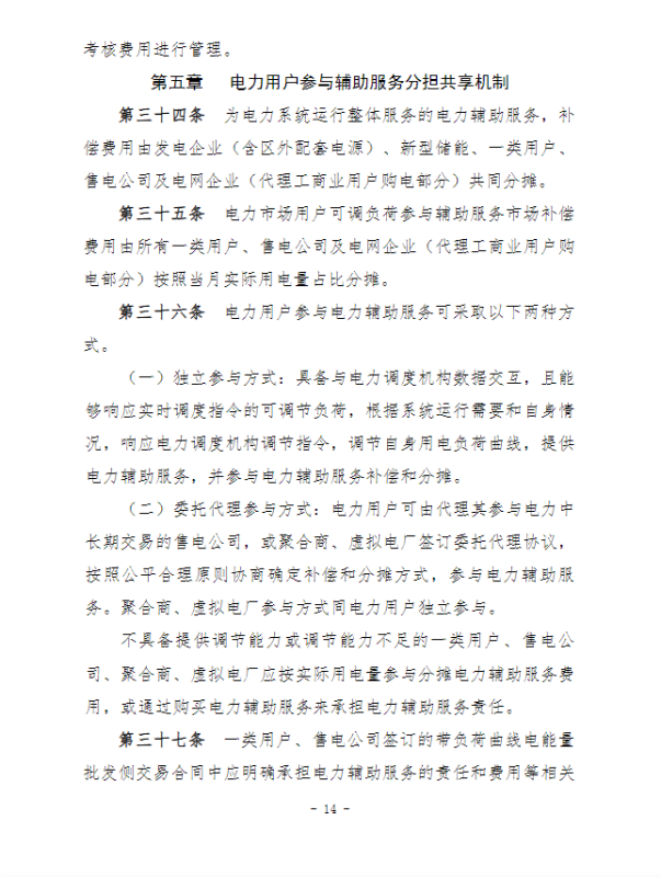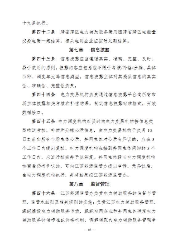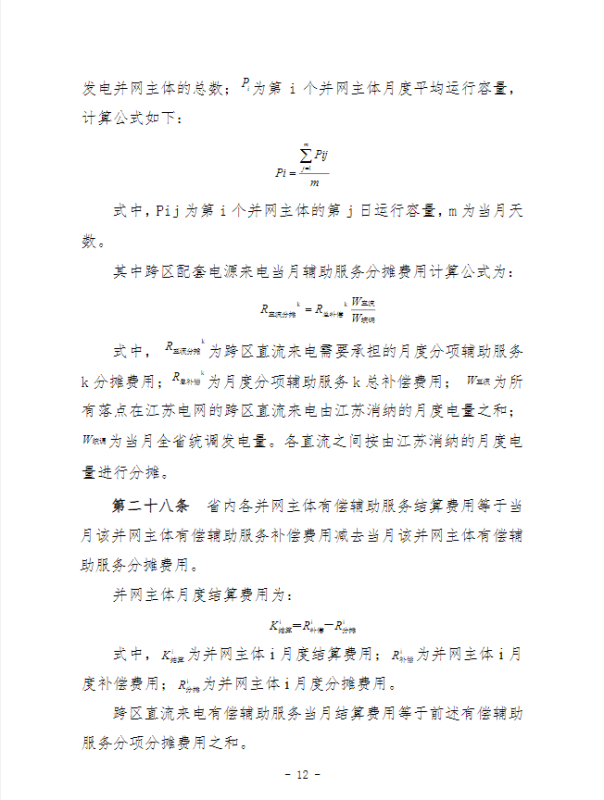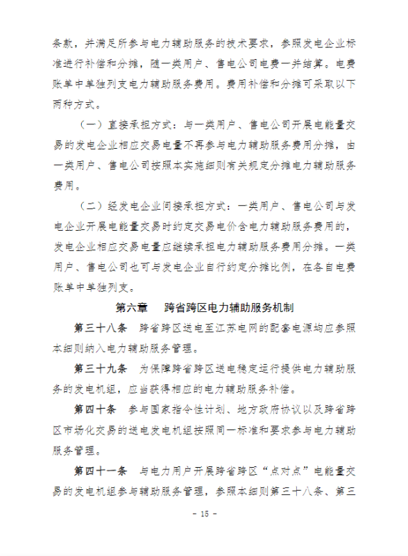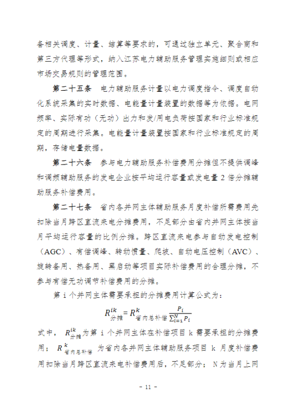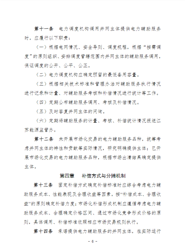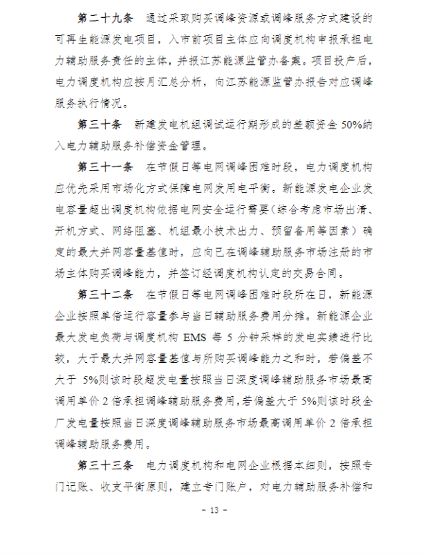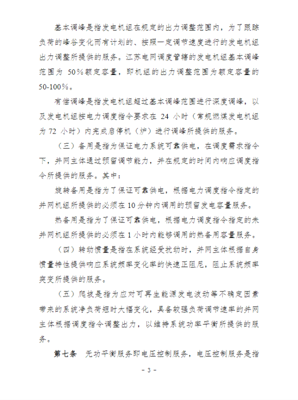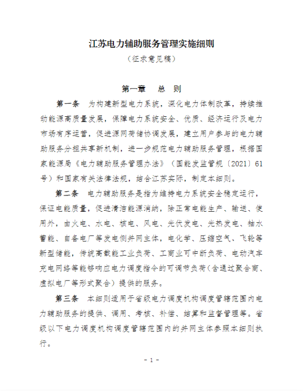 江蘇電力輔助服務(wù)管理實(shí)施細(xì)則(征求意見稿)
