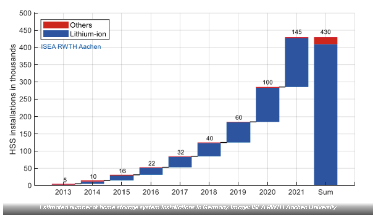 德國2013年~2021年部署的家庭儲能系統(tǒng)