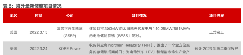 國內企業(yè)紛紛出海,中標海外儲能項目,不斷進行全球化布局。據不完全統(tǒng)計,3月份國內企業(yè)中標海外儲能項目達1.58GWh,不斷推進出海戰(zhàn)略,其中華為數字能源將為佳華美能在加納開發(fā)的1GW大型地面光伏電站和500MWh儲能項目提供全套智能光儲解決方案,滿足加納政府制定的于2030年可再生能源比例在能源結構中占比提升至10%的要求??脐戨娮訛槟厦雷畲蟮膬δ茈娬咎峁╇姵貎δ芟到y(tǒng),3月8日南都電源中標意大利國家電力公司儲能項目,同時簽約了2個美國光伏儲能項目,國內企業(yè)紛紛出海搶占國外市場。