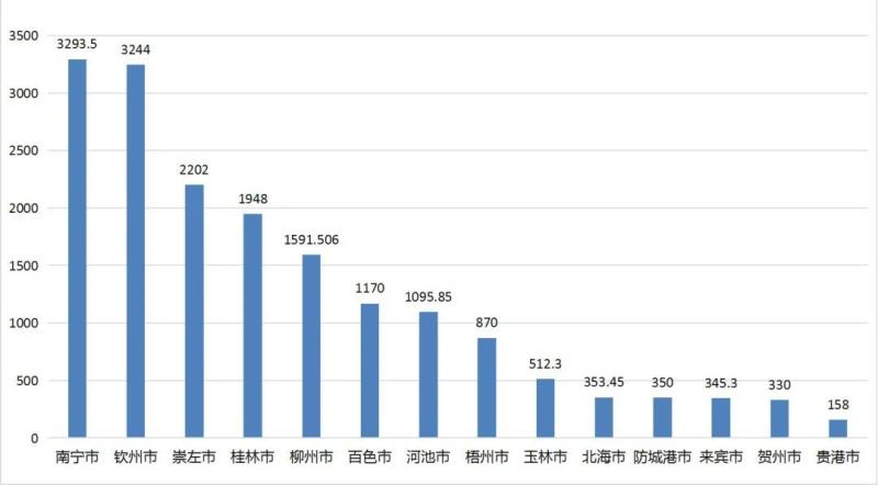 124個(gè)項(xiàng)目按地區(qū)分解情況,南寧、欽州和崇左分列前三