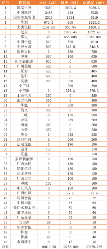 電源項(xiàng)目推進(jìn)計(jì)劃表匯總顯示,共包括29.38GW的風(fēng)光項(xiàng)目,其中光伏16.6GW、風(fēng)電12.76GW。根據(jù)業(yè)主梳理情況來(lái)看,國(guó)家電投、中國(guó)能建、國(guó)家能源集團(tuán)分別以5.06GW、3.94GW、3.92GW的規(guī)模位列前三。