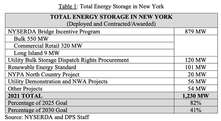 紐約州公共服務(wù)部(DPS)表示,截至2021年底,已經(jīng)部署或簽約的儲(chǔ)能項(xiàng)目總裝機(jī)容量為1,230MW,約占1,500MW目標(biāo)的82%。然而,該州的儲(chǔ)能部署進(jìn)展似乎很緩慢。