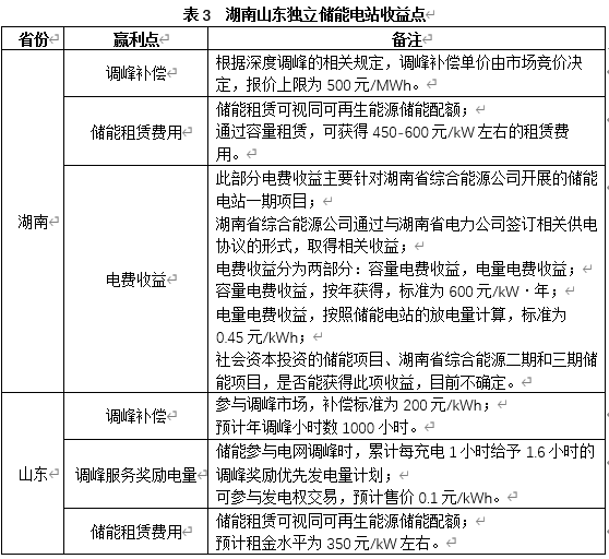 在容量租賃+調峰補償?shù)纳虡I(yè)模式下,部分省份的共享儲能電站已經(jīng)具備一定的投資價值。湖南、山東是目前共享儲能電站盈利模式較為典型的省份,其收益模式如表3所示。