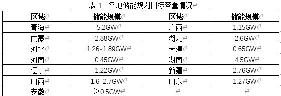 截至目前,據(jù)不完全統(tǒng)計,全國已有十余省市正式對外公布了儲能發(fā)展規(guī)劃,規(guī)劃的新型儲能總裝機規(guī)模已超過30GW(部分?。ㄊ校┮?guī)模如表1所示)。