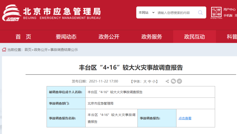 2021年11月22日,北京市應(yīng)急管理局發(fā)布事故調(diào)查報(bào)告,全文如下:
