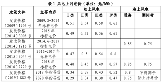 指導電價階段。2019年5月21日,國家發(fā)展改革委發(fā)布的《關于完善風電上網(wǎng)電價政策的通知》(發(fā)改價格〔2019〕882號)提出,集中式項目標桿上網(wǎng)電價改為指導價,新核準上網(wǎng)電價通過競爭方式確定,不得高于項目所在資源區(qū)指導價;對于分布式項目,參與市場化交易的由發(fā)電企業(yè)與電力用戶直接協(xié)商形成上網(wǎng)電價,不享受國家補貼;不參與市場化交易的,執(zhí)行項目所在資源區(qū)指導價。風電指導價低于當?shù)厝济簷C組標桿上網(wǎng)電價(含脫硫、脫硝、除塵電價,下同)的,以燃煤機組標桿上網(wǎng)電價作為指導價;2021年1月1日起,新核準的陸上風電項目全面實現(xiàn)平價上網(wǎng),國家不再補貼。