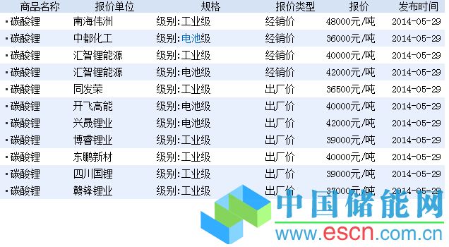 5月30日國(guó)內(nèi)主流碳酸鋰廠家產(chǎn)品市場(chǎng)報(bào)價(jià)