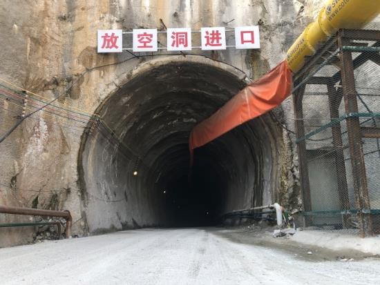電站放空洞位于下水庫河床左岸山體內(nèi),斜井段長度111.447米,傾角為30度的緩斜井,開挖難度大,施工安全風(fēng)險高,同時還面臨汛期過流的工期壓力。項目部結(jié)合施工工期和安全要求,采用“自上而下開挖為主、上下同時開挖相結(jié)合”的斜井施工方案,從上平段正井開挖,全斷面一次爆破,使用單筒絞車牽引有軌礦用斗車出渣;從下平段進入自下而上分臺階爆破開挖,反鏟扒渣至平段裝車出渣。