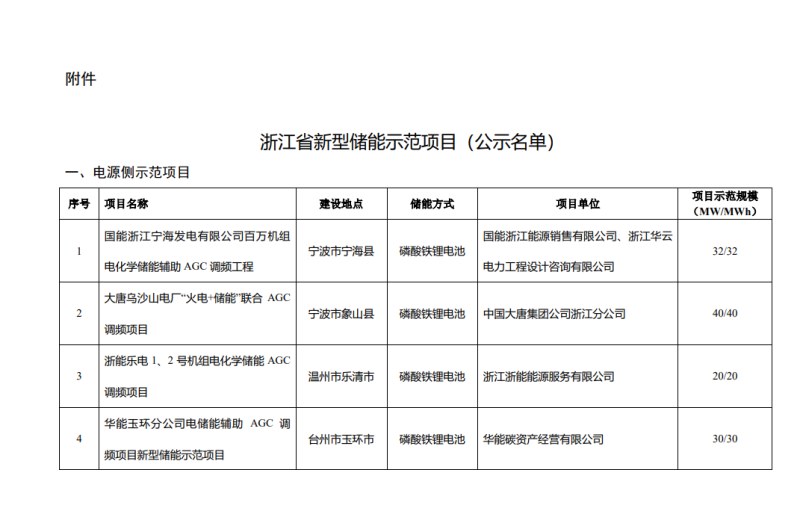 附件:浙江省新型儲(chǔ)能示范項(xiàng)目(公示名單)