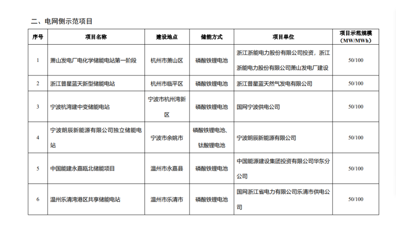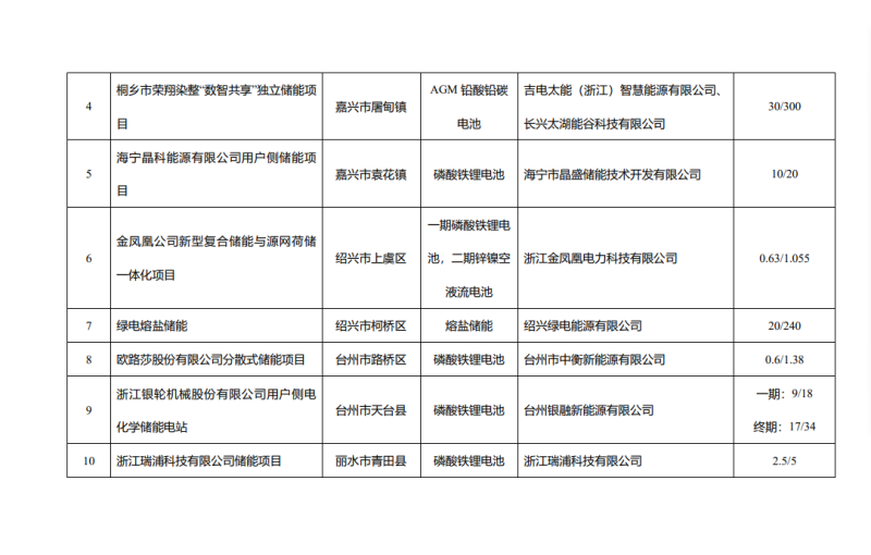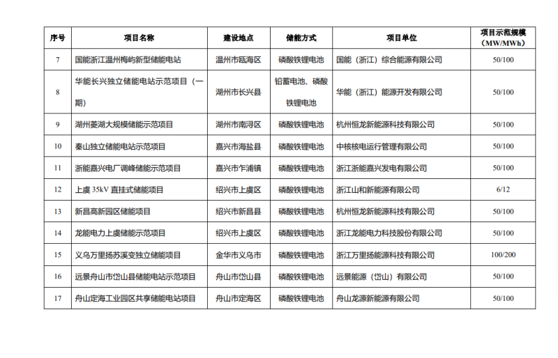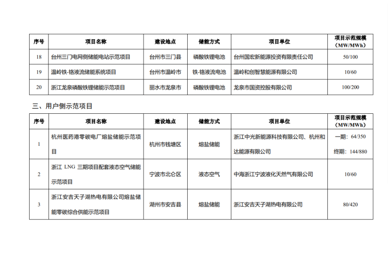關(guān)于浙江省新型儲(chǔ)能示范項(xiàng)目的公示