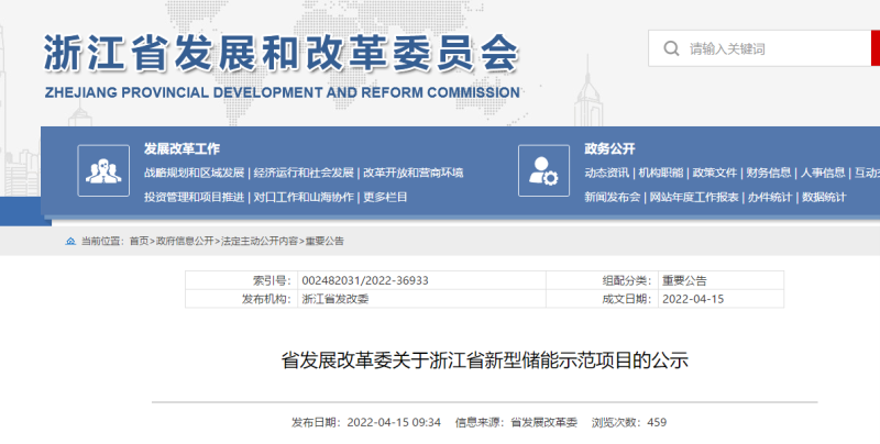 作者:中國(guó)儲(chǔ)能網(wǎng)新聞中心 來(lái)源:浙江省發(fā)展改革委 發(fā)布時(shí)間:2022-04-15 瀏覽:次