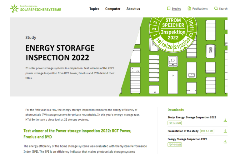 中國(guó)儲(chǔ)能網(wǎng)訊:由HTW Berlin發(fā)起,并在整個(gè)歐洲具有較高認(rèn)可度的STUDY ENERGY STORAGE INSPECTION 2022(儲(chǔ)能檢測(cè)報(bào)告2022)近期正式發(fā)布?!白罡咝?chǔ)能系統(tǒng)“頭銜再次由阿詩特能源(RCT Power)摘得,這也是阿詩特能源(RCT Power)連續(xù)兩年獲得該項(xiàng)殊榮。