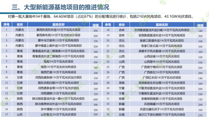 三、大型新能源基地項(xiàng)目的推進(jìn)情況