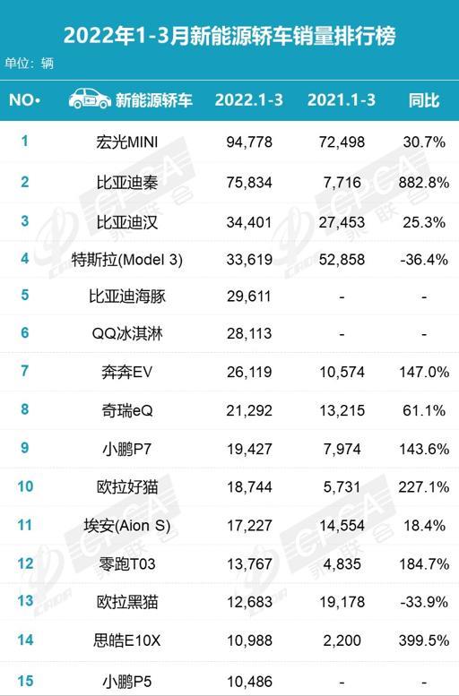 在今年一季度的新能源轎車細分市場銷量排行中,上汽通用五菱宏光MINI以94778臺的銷量成績,奪得了新能源轎車細分市場的頭把交椅。